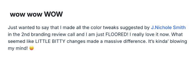 You open your laptop Monday morning and everything just feels right. Your brand isn't just "pretty"... it's flowing, cohesive, alive! Not just visually, but energetically. You feel clear, confident, and lit up every time you look at your website... every time you sit down to write a post or a blog or an email.