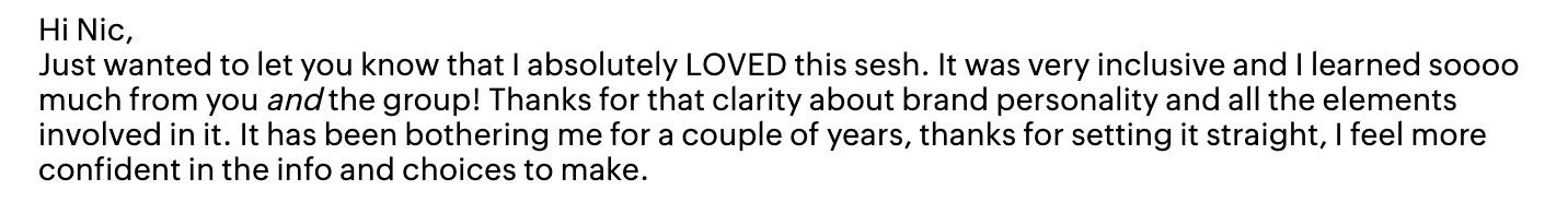 Get the exact formula I've used with hundreds of my high-profile, industry-leading one-to-one Clients to help you find your positioning based on personality type, archetype and then use that to create psychological consistency. Finally nail your harmonious colour palette with colour psychology not to mention totally make over your messaging PLUS have a fool-proof way to keep creating more content in the right brand voice.
